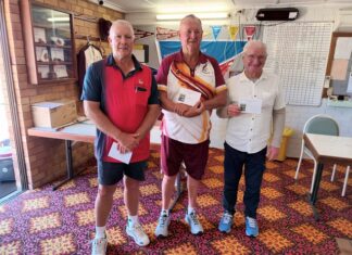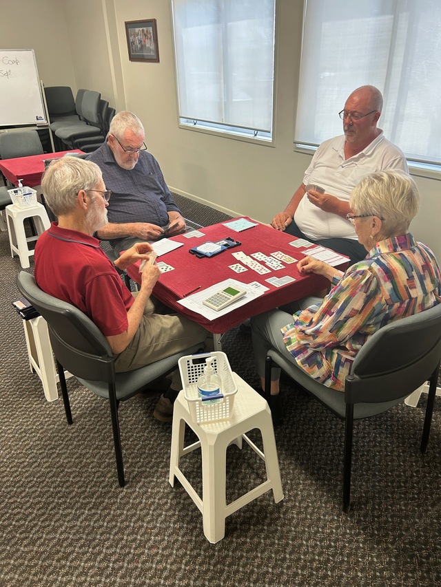 Results, Friday, 26/09/25: (4 & 1/2-table Howell): L. Don T. Hinde (62.5)1 eq; P. Kelly M. Simpson (62.5) 1 eq; G. Schmidt I. House (51.7) 3; D. Moran N. McGinness (50.7) 4. Monday,06/10/25 (5& 1/2-table Howell): J. Nankervis P. Kelly (60.6) 1; T. Hinde D. Moran (59.7) 2; N. Collins M. Simpson (57.9) 3; M. Warren B. Warren (56.9) 4. Friday, 03/10/25 (4 & 1/2-table Howell) K. Steffensen C. Miller (79.2) 1; H. Price N. McGinness (56.2) 2; T. Hinde L. Don (52.1) 3; C. Duggan S. Goddard (51.4) 4.
