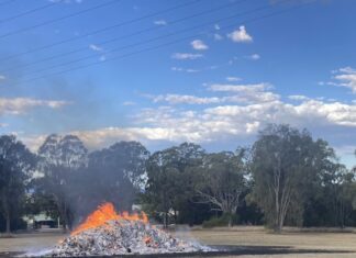 A waste truck was forced to dump a burning load in a Warwick park last Thursday afternoon.