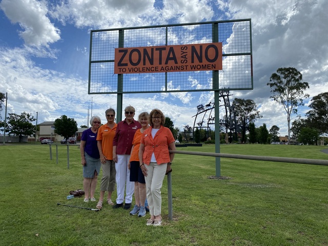 Warwick Zonta members Sue Platt, Janet Platz, Jenny Aldridge, Hillary Taylor and Rhonda Betts are taking a stand against gendered violence. (Jeremy Cook: 520895)