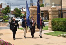The cenotaph at Warwick’s Leslie Park towered over a solemn scene as more than 300 people gathered on Remembrance Day on Tuesday 11 November.