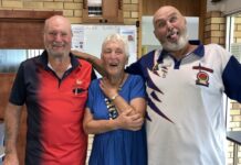 Julie Grayson and Margaret Lawton pegged out on 26 to win their Warwick Croquet Association Play game on Tuesday, 10 February.