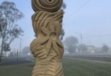 Local Gale Ward spotted this dunce hat on the sculpture down by the River near Tiddalik, a new development in the adventures of dressing...